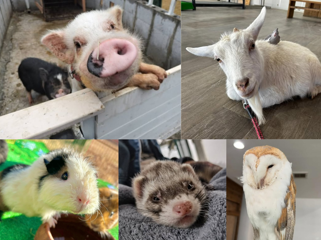 ヤギ、ブタ、ハリネズミ、フクロウ、チンチラなど…