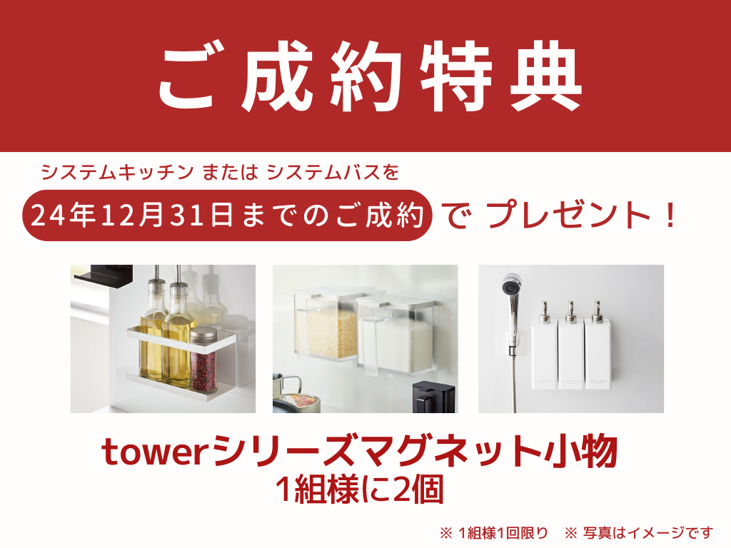 当日イベントご来場のうえ、期間中にご成約をいただいた方限定で、towerシリーズマグネット小物を1組様に2個プレゼント!