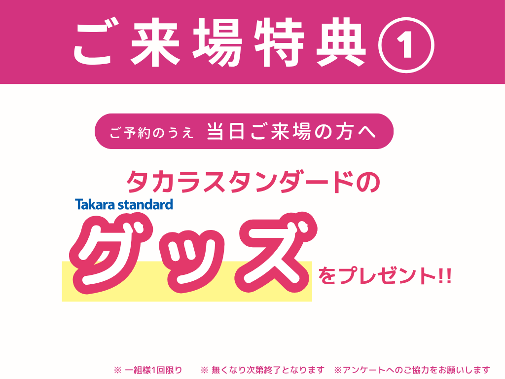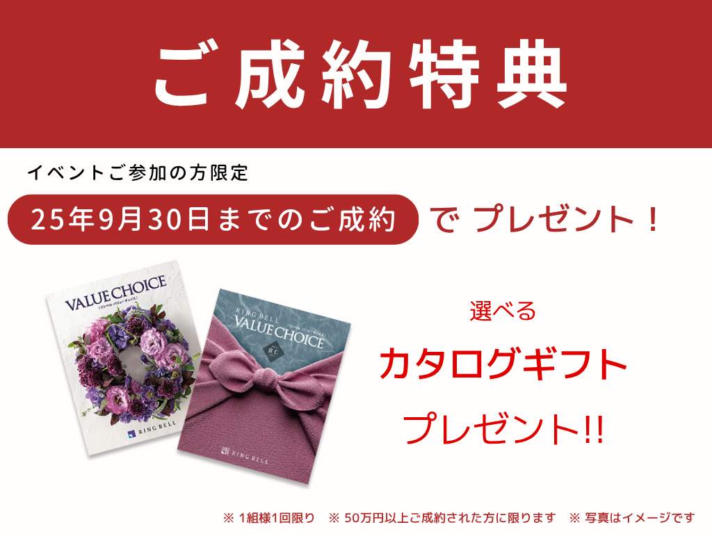 当日イベントご来場のうえ、期間中にご成約をいただいた方限定でご成約特典プレゼント!