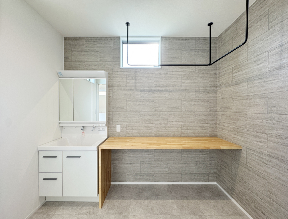 ◎造作棚とアイアンバー付き洗面所
