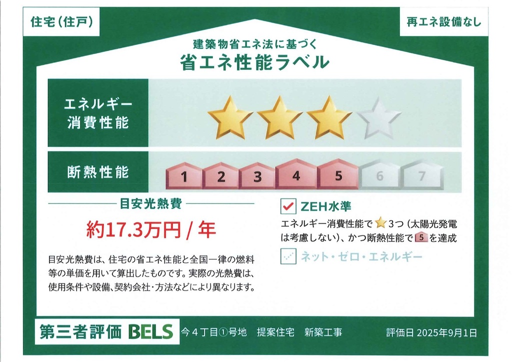 今4丁目提案住宅は「★3」の評価&ZEH相当の省エネ性能の高い住まい!