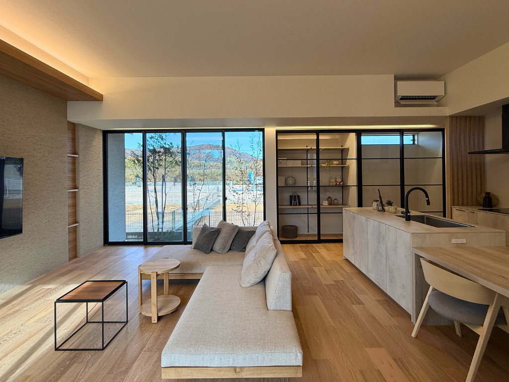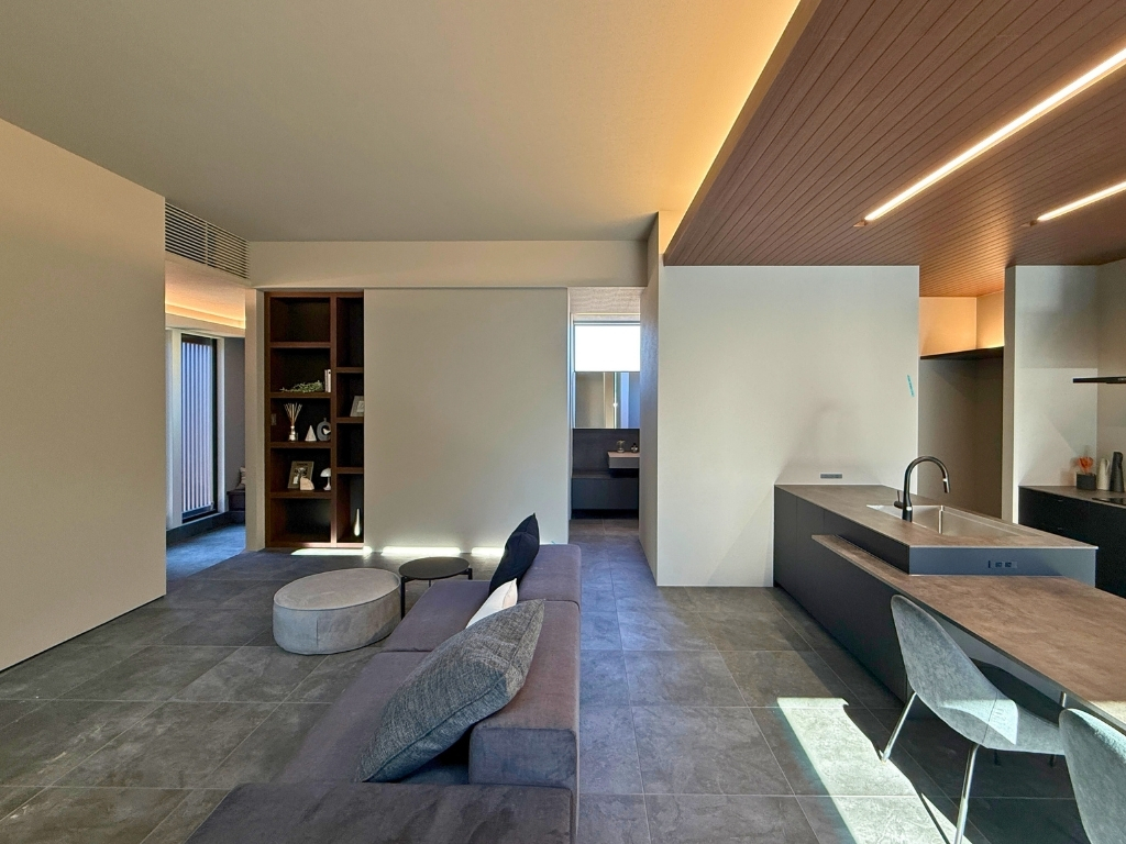 落ち着いたトーンでまとめた外観と、上質な素材感が心地よいホテルライクな内観。