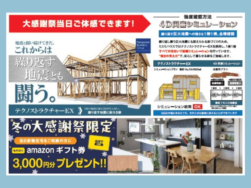 1棟1棟に構造計算を行い、耐震等級3以上にも対応する確かな性能を「数字」だけでなく「体験」で理解できる貴重な機会です。