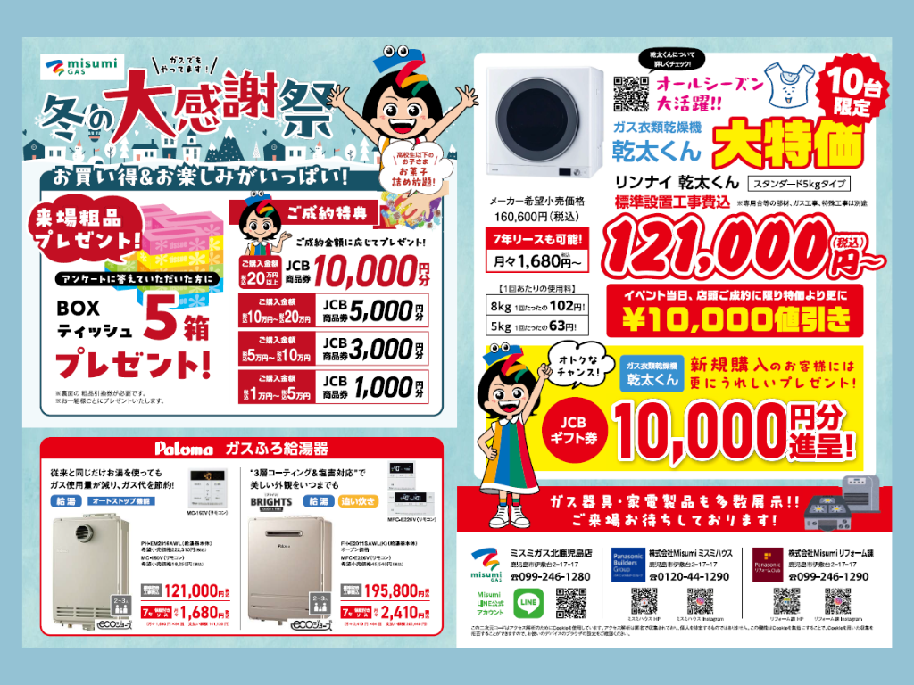 ガス衣類乾燥機「乾太くん」など人気商品も特価で勢ぞろい!