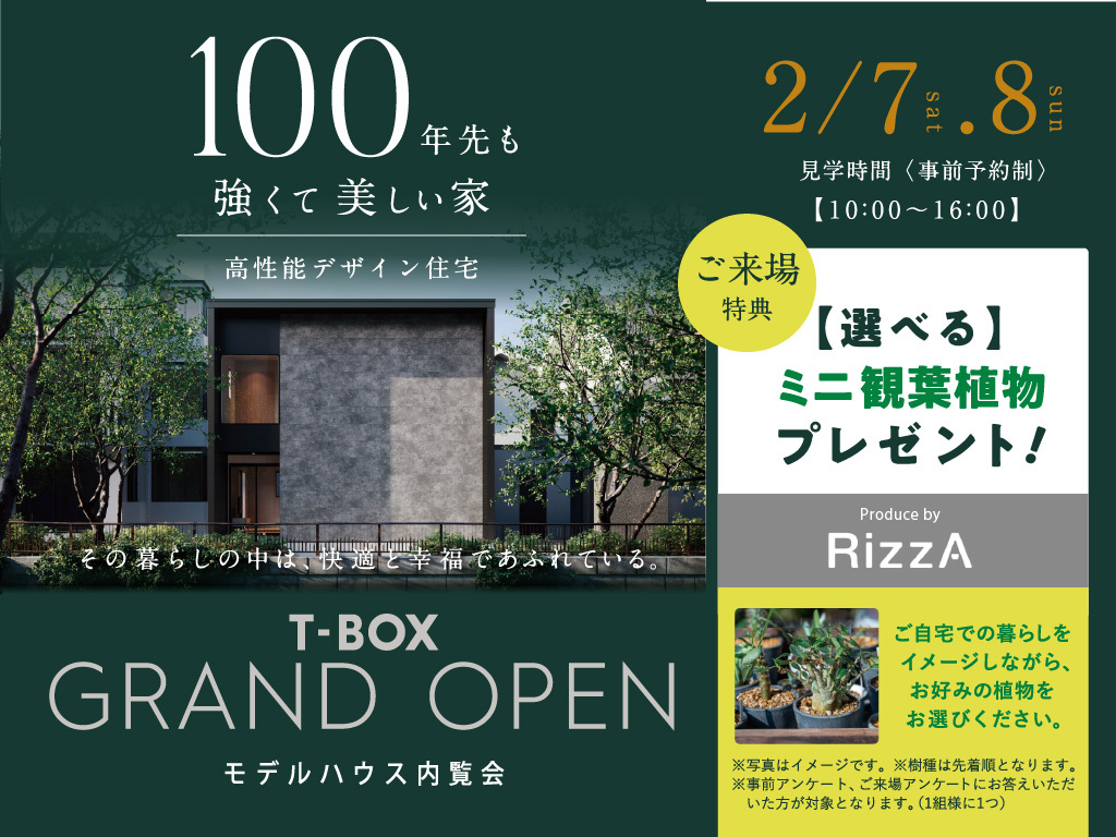 | タイトル | 西福原モデルハウスT-BOX GRAND OPEN |