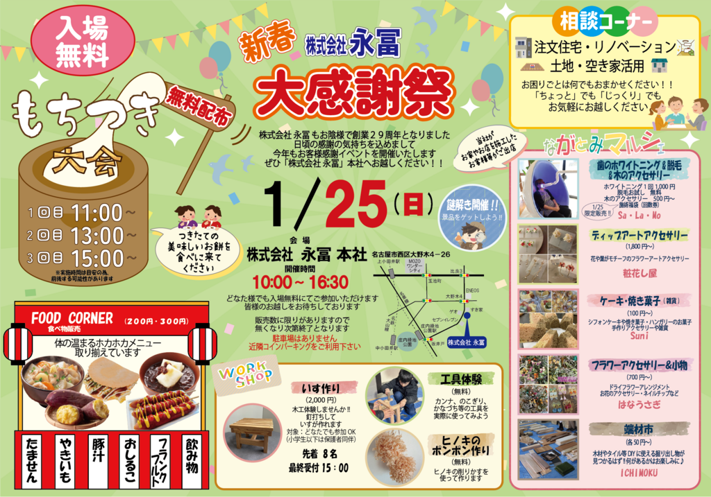 1月25日(日)は、空き家相談会とあわせて新春お客様感謝祭を開催しています。
