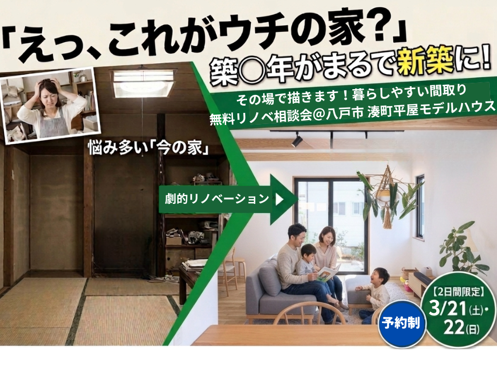 | タイトル | 【リノベーション】その場で描きます!実家・中古住宅の「暮らしやすい間取り」無料リノベ相談会 |