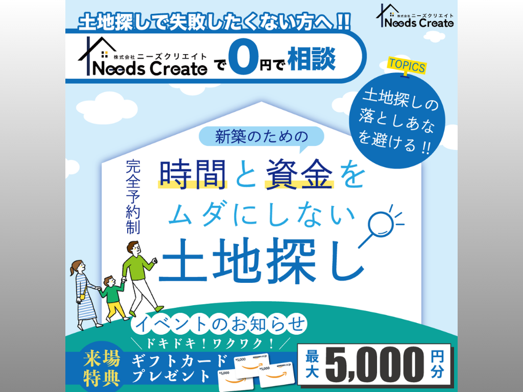| タイトル | 土地探しで失敗したくない方へ!時間と資金をムダにしない土地探し相談会 |