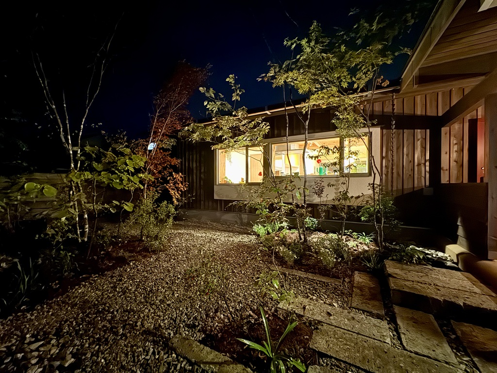 日中は自然光で明るく見えるリビングも、夜になると照明の配置や色合いによってまったく違った雰囲気を生み出します。間接照明がつくり出す陰影、ダイニングに集まる温かな灯り。実際にその場で体験することで、「この家でどんな夜を過ごせるか」を具体的に想像できます。