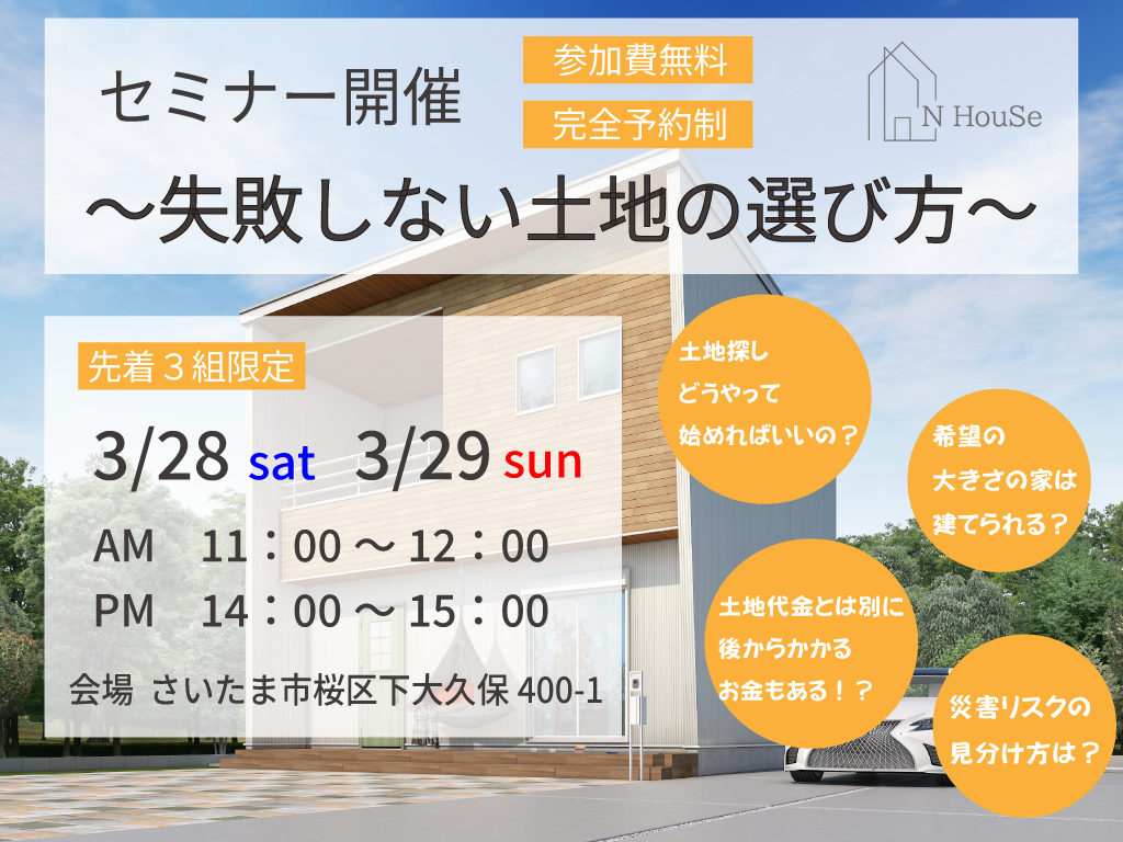 本セミナーでは、土地探しの疑問や不安を解消するための具体的な情報をお届けします。