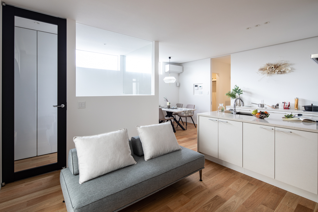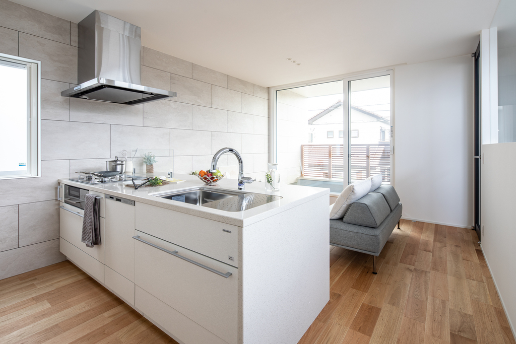 キッチンとリビングがゆるやかにつながるこの場所には家族の会話や穏やかな時間が自然と流れていきます。何気ない日常こそが、この家の豊かさを物語っています。