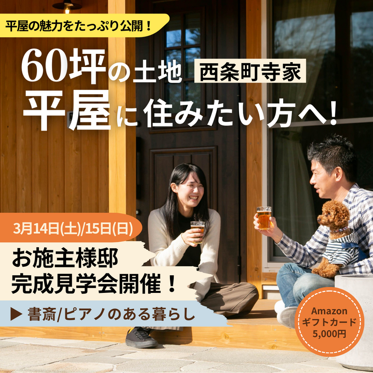 ※日興ホームの施工エリア(広島県全域+岩国市)で新築のご計画がある方に限ります。※日興ホームに初めて来場される方に限ります。※このページよりご予約いただいた方に限ります。※他キャンペーンとの併用はできません。