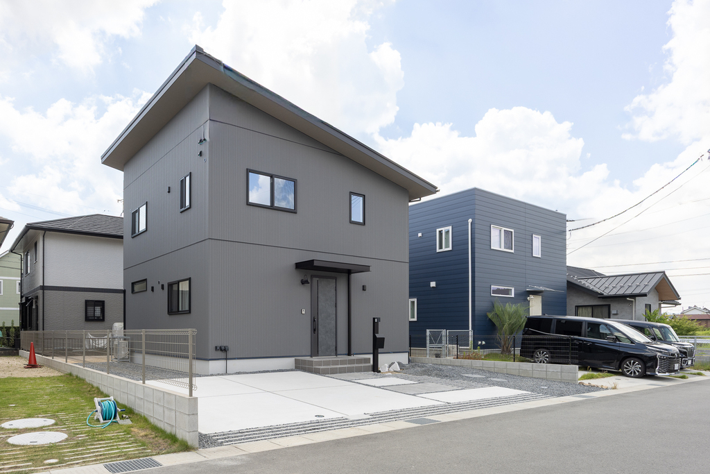 シャープな片流れ屋根がつくる洗練された佇まい。