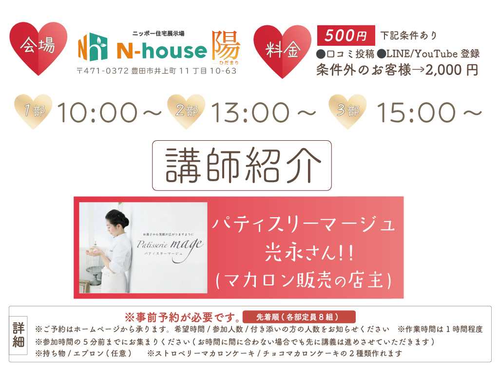 | タイトル | バレンタインworkshop〜マカロンケーキを作ろう〜 |