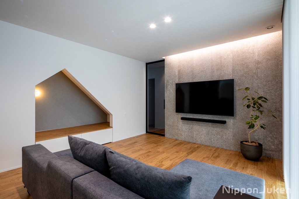 階段下を活用したヌックは、丸い入り口のかわいいデザイン。おうち時間を楽しむ新しい居場所が生まれます。