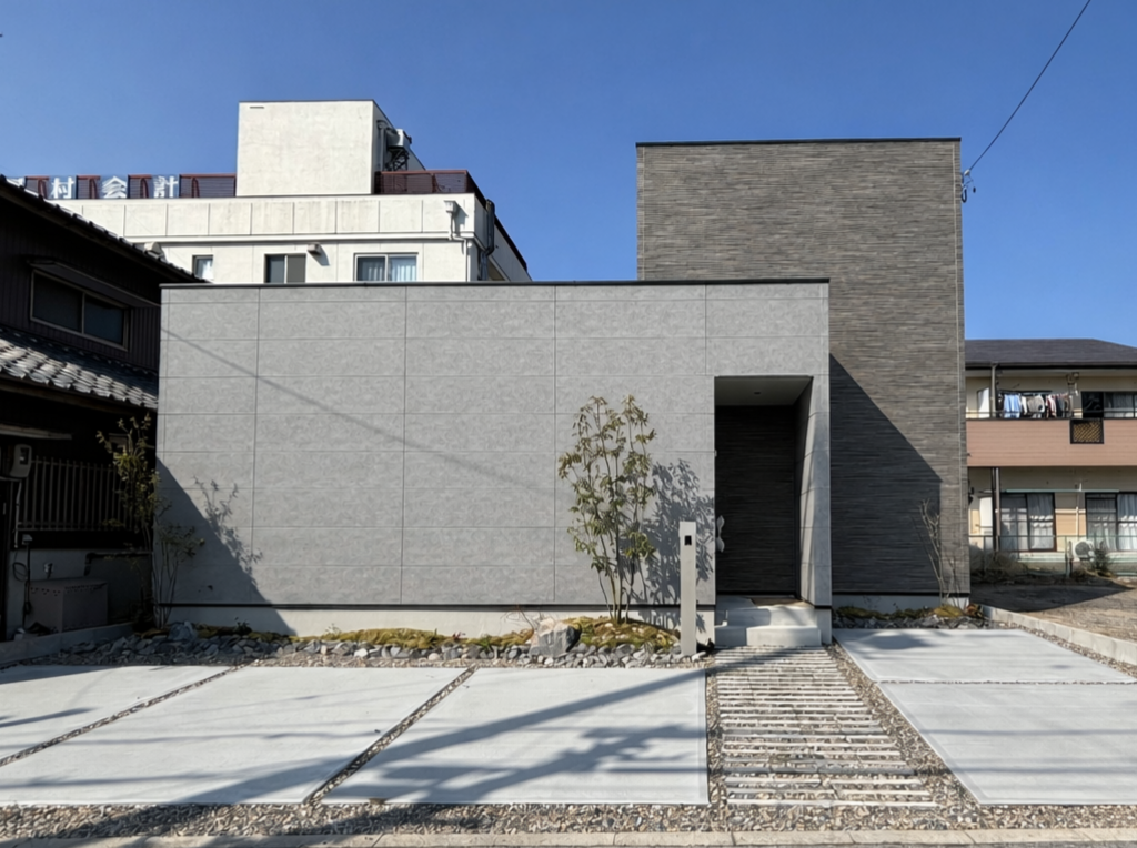 住宅街に美しく溶け込む、シンプルな佇まい。正面はもちろん、側面から見た時の美しさにもこだわって設計しました。