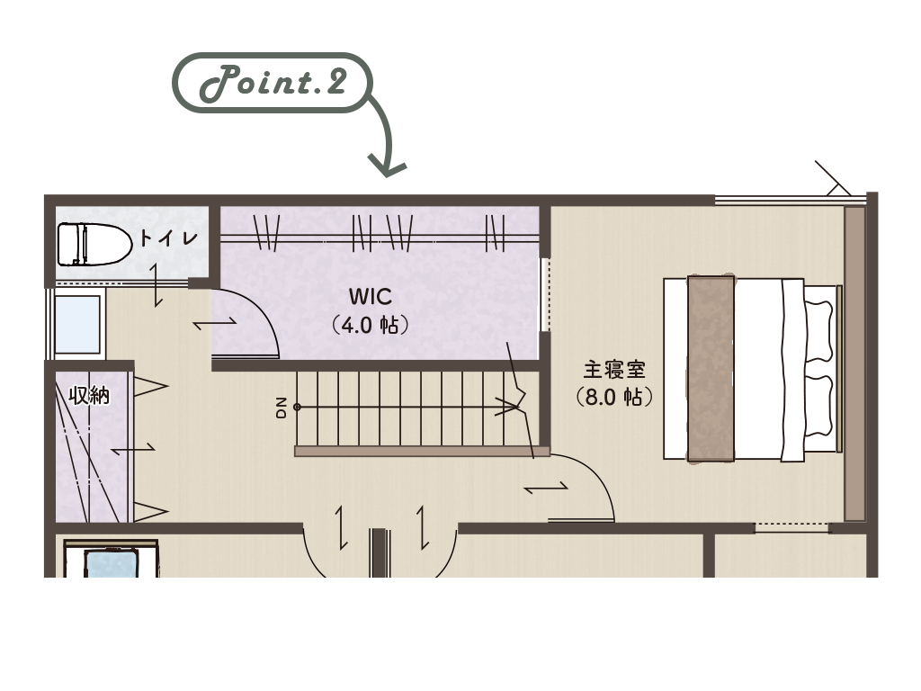 【Point.2】寝室からも廊下からもアクセスできる、4.0帖のウォークスルークローゼット