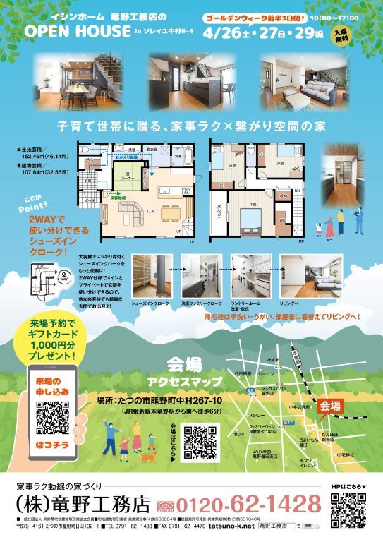 | タイトル | SO中村Ⅱー4モデルハウス GW見学会開催 4/26(土)・27(日)・29(祝火) |