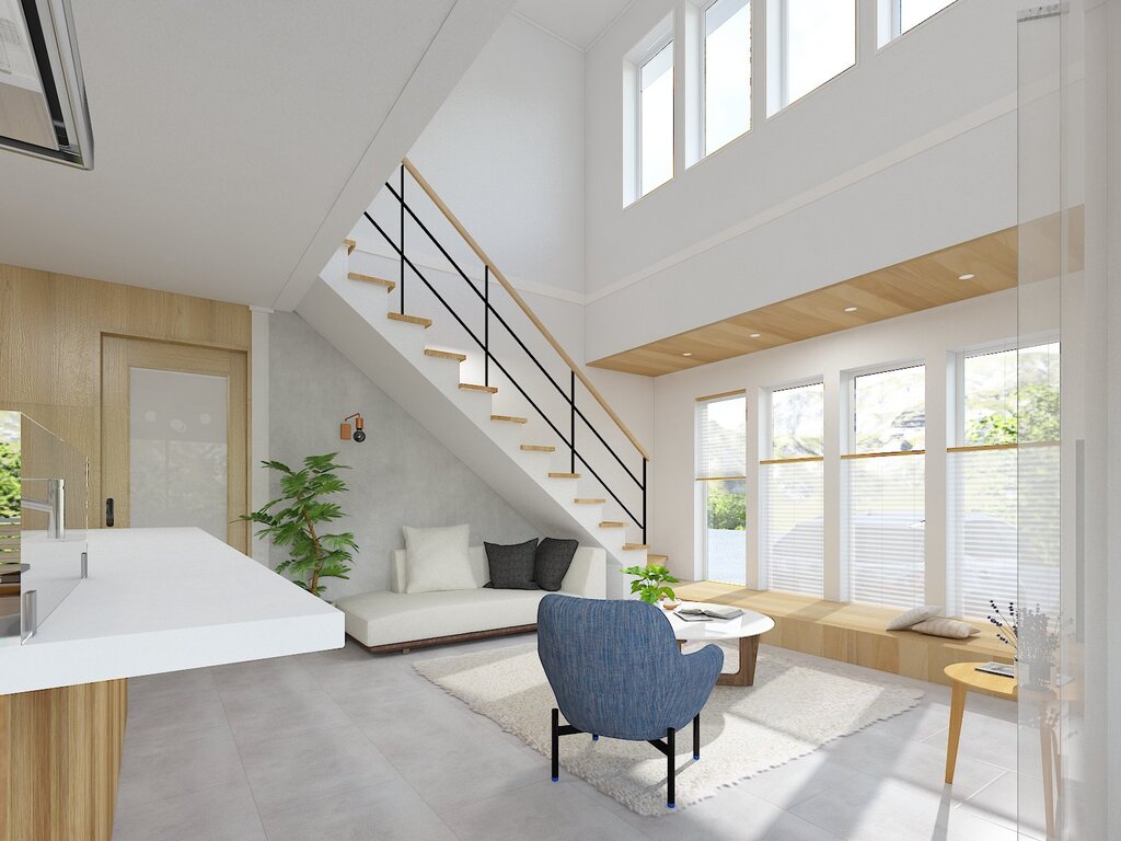 ・明るく広々したリビングと吹抜けの空間