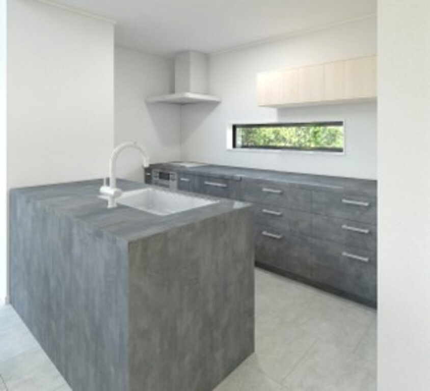 キッチンは、グラフテクト製のものを使用し、高級感と空間の一体感を図りました。