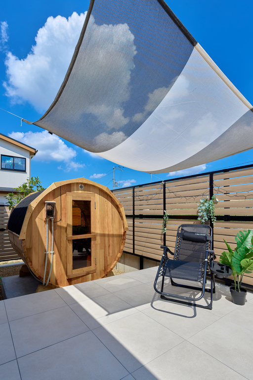 モデルハウスでは実際に特注のバレルサウナが置いてあるので、ぜひ体験してみてください。