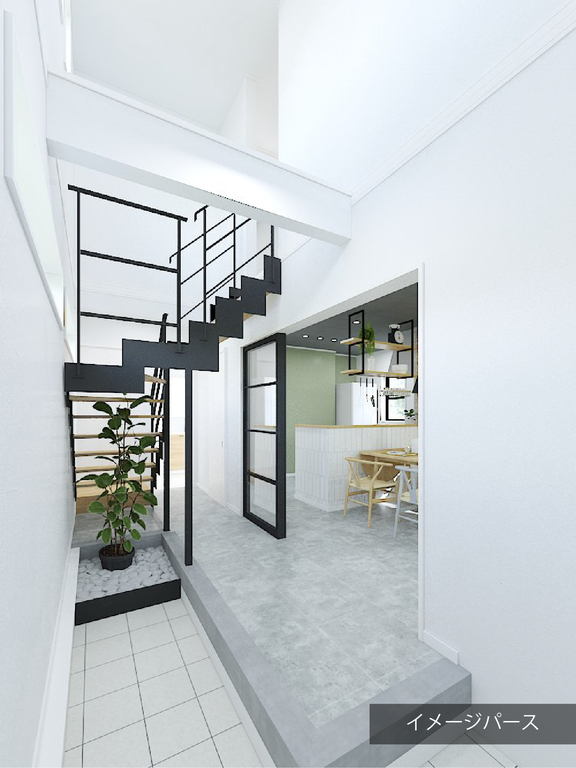 人を招きたくなるような鉄骨階段で抜け感のある玄関が見せ場の住宅です。