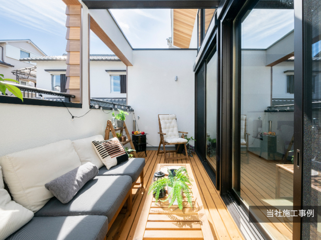 洗濯物をゆったりと干せるだけでなく、アウトドアリビングとしても活用できます。
