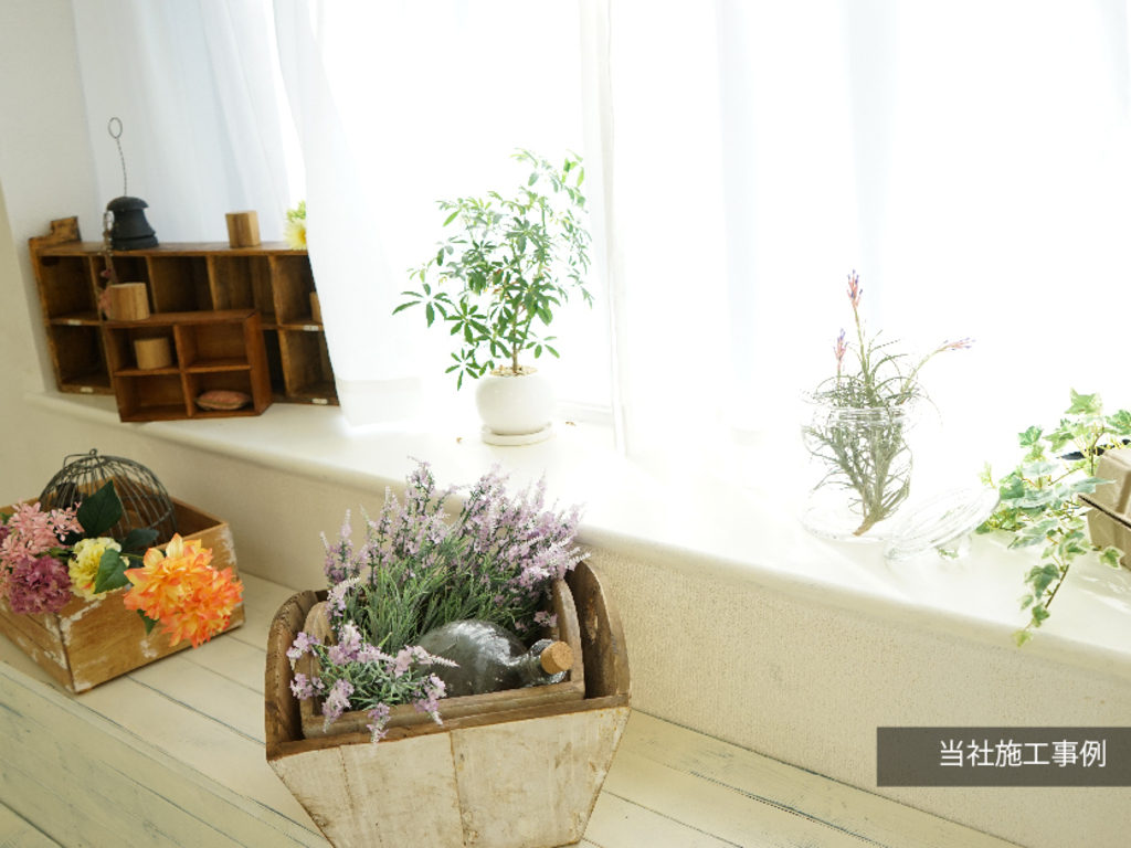 リビング側に設けられた出窓は、光を採り入れるだけでなく、ちょっとした腰掛けスペースとして活用できます。また、空間を広く感じることができます。