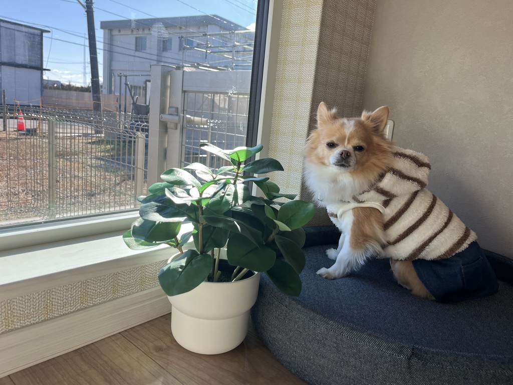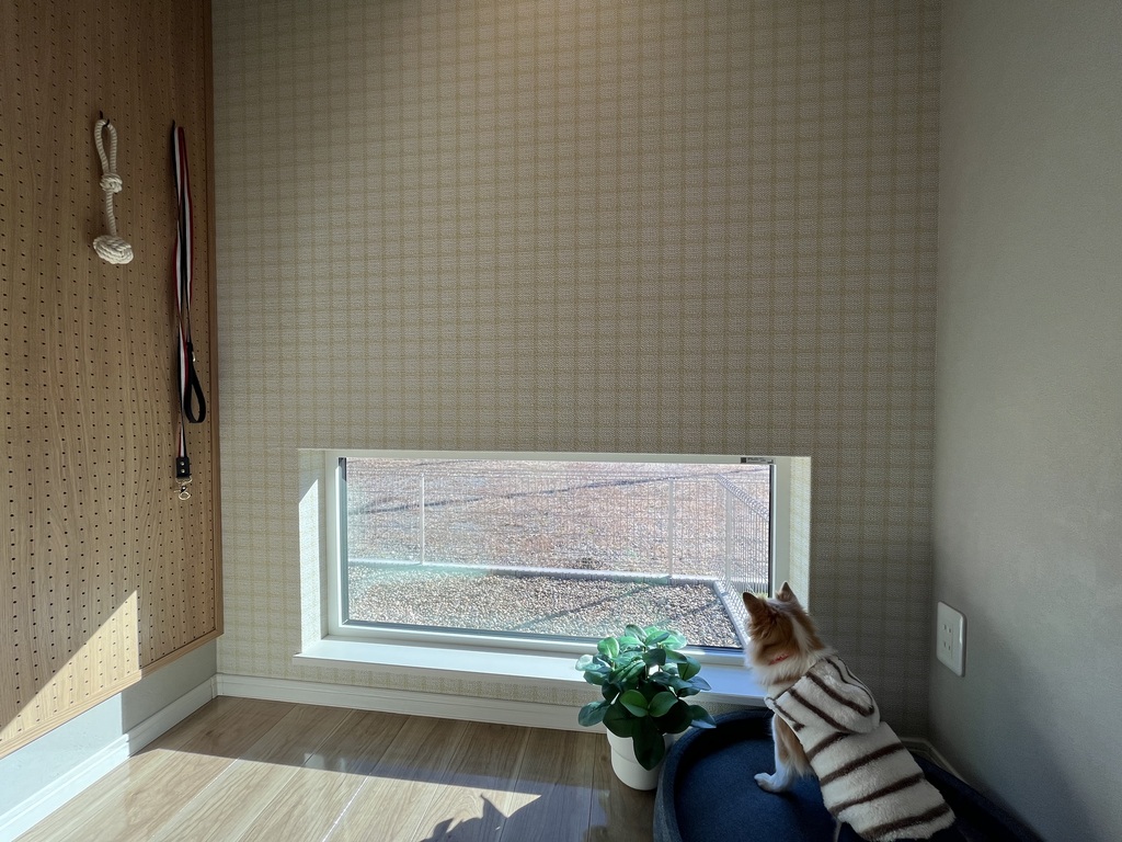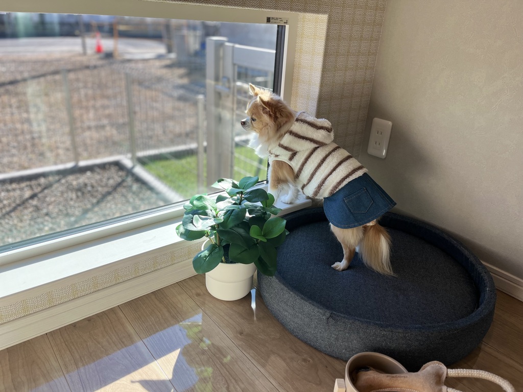 リビングの温もりを感じながら、窓の外を行き交う景色や、大好きな飼い主様の『おかえり』を一番に見つけることができます!