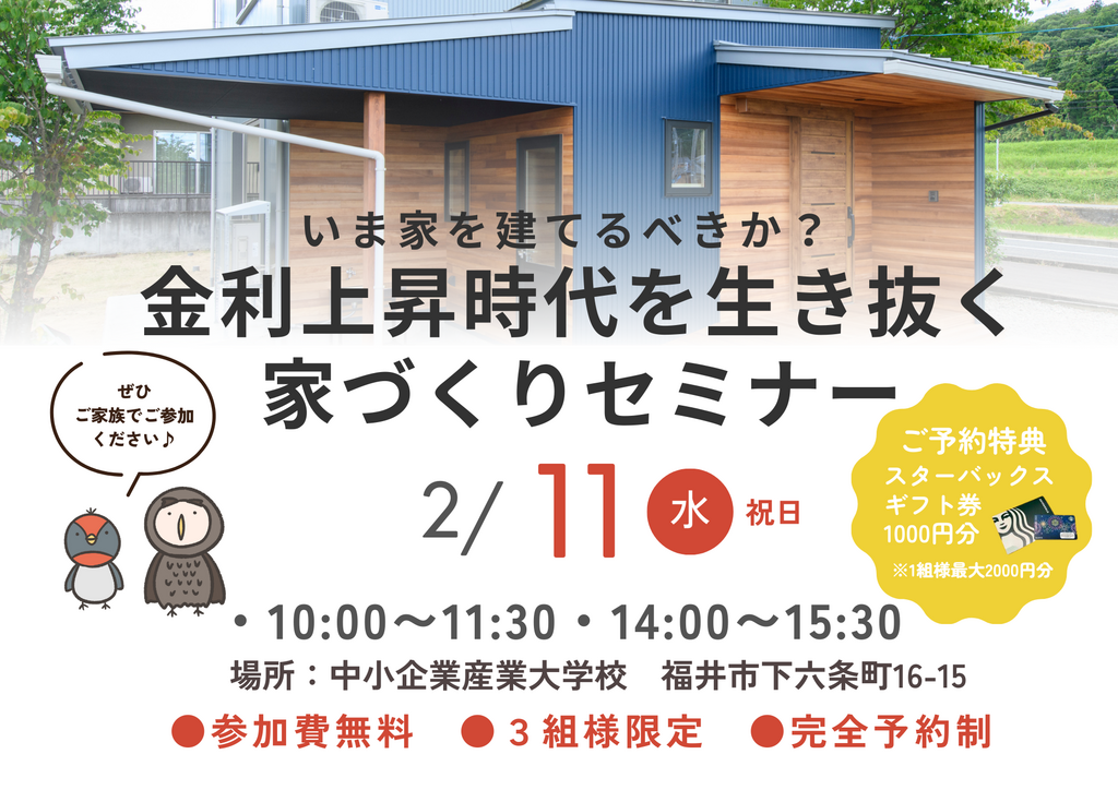 | タイトル | 【いま家を建てるべきか?】金利上昇時代を生き抜く家づくりセミナー |