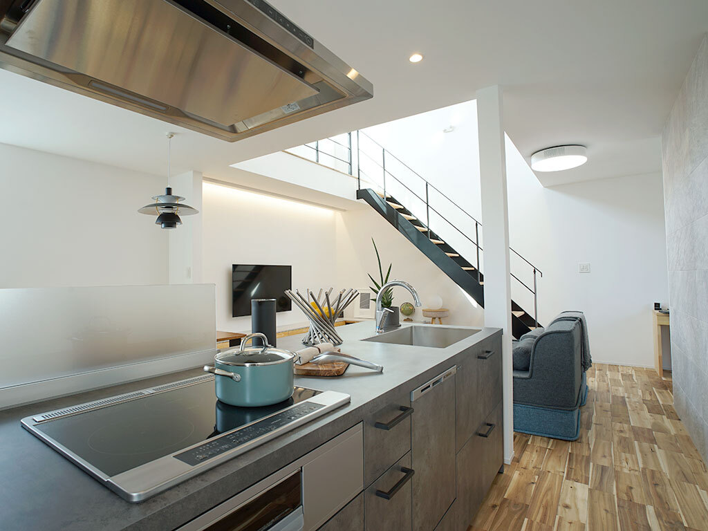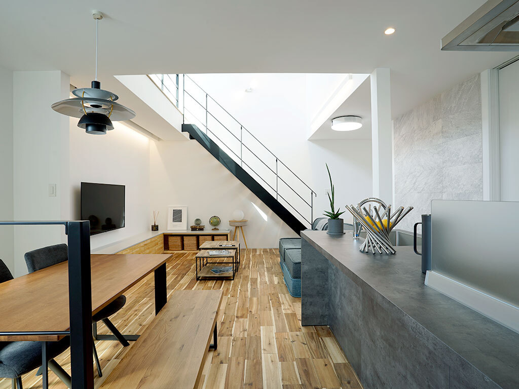 やわらかな光が吹き抜けを通して住まい全体に満ちる、上質な佇まいのモデルハウス。写真や図面だけでは伝えきれない、空気の流れや音の響き、時間帯ごとに移ろう光の表情が、この空間ならではの魅力です。