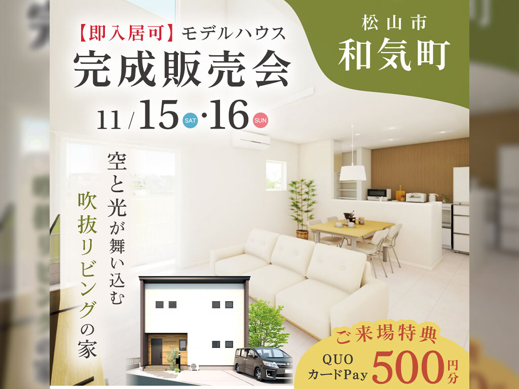 | タイトル | 【松山市和気町】モデルハウス完成販売会 |