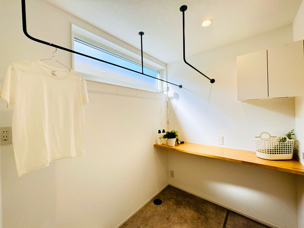浴室、脱衣所、洗濯スペース、ファミリークローゼットが一直線につながる効率的な家事動線が魅力です。洗濯物をその場で干し、乾いたらすぐに収納できるため、日々の家事負担を大幅に軽減。天候に左右されずに洗濯ができるため、共働きのご家庭にも最適です。