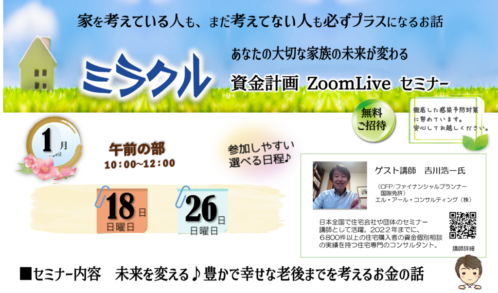 | タイトル | ミラクル資金計画 【新築編・ZOOM無料セミナー】 |