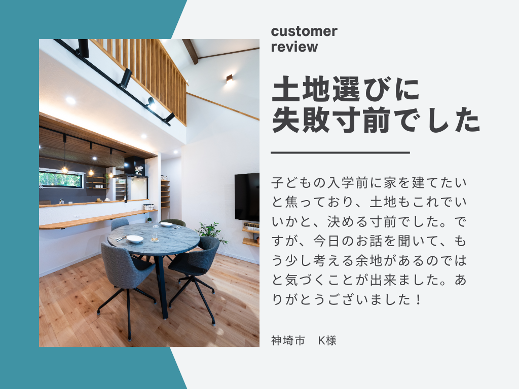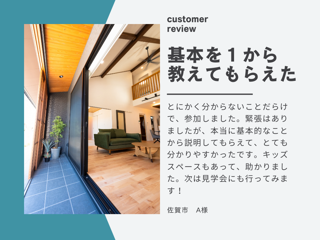 ●家づくりについて何も分からないような状態でしたが、資金計画から一つ一つ丁寧に説明していただいて、とても分かりやすかったです。