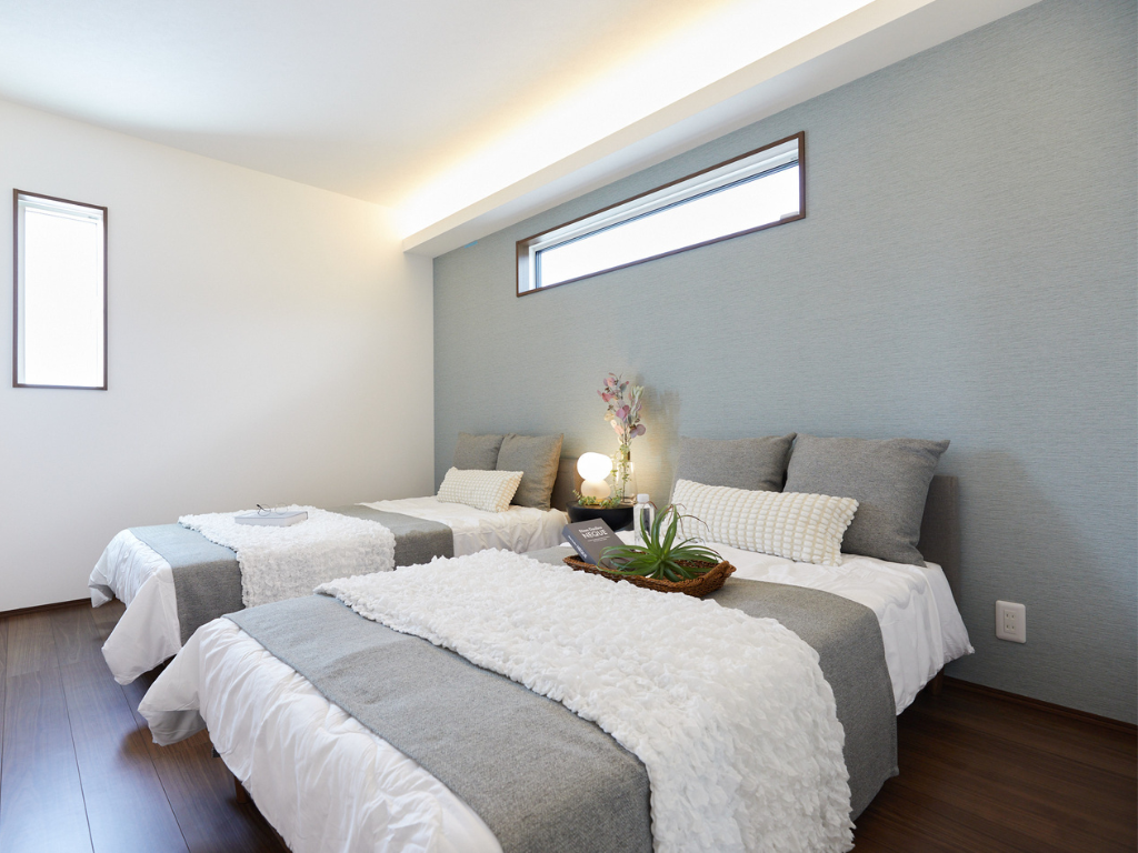心地よい2面開口の主寝室には1.8帖の大型WICを設置。高い収納力でワードローブがすっきり収まります。