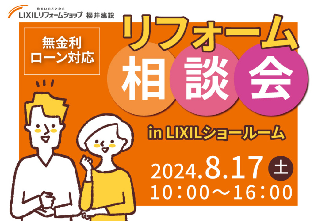 | タイトル | 【8月17日】無金利ローンに対応!リフォーム住まいの相談会【LIXILショールーム】 |