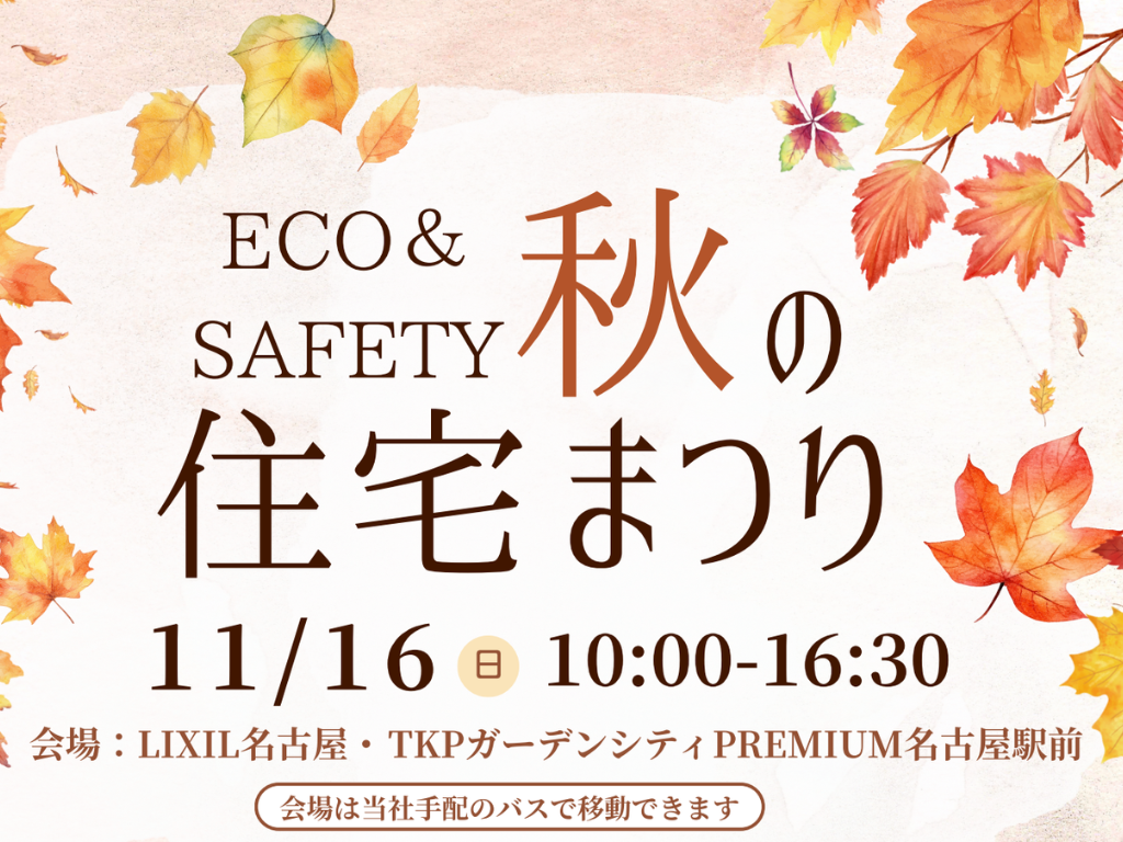 この11月、中部エリアで最大のオリジナルイベント「エコアンドセーフティ住宅まつり」を開催します。ご予約の上ぜひ皆様でご来場ください。