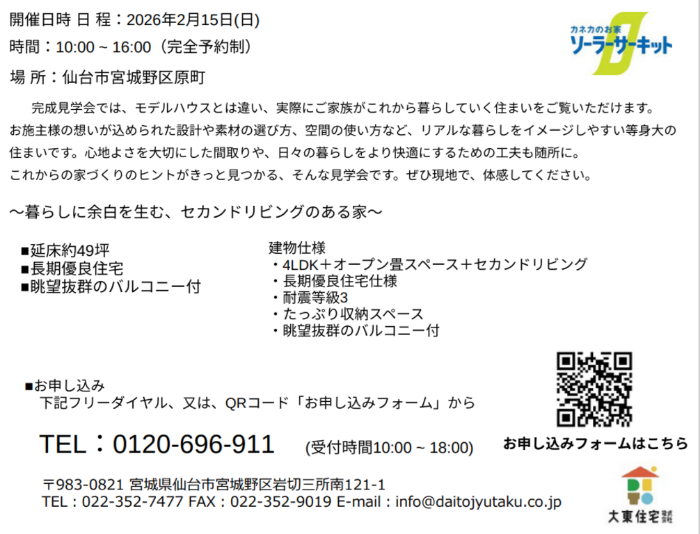 | タイトル | 仙台市宮城野区 完成見学会 |