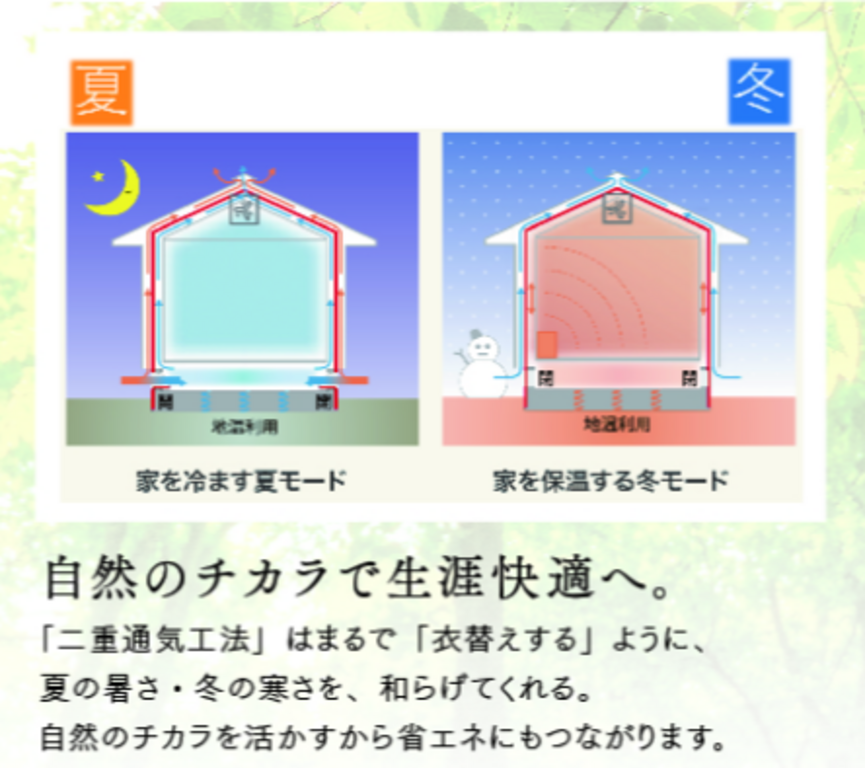 外断熱×二重通気の「ソーラーサーキット工法」で建てられた年中快適な住まいをぜひ体感ください。
