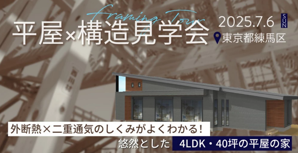 東京都練馬区にて、建築中の平屋の住まいを会場に、構造見学会を開催いたします。