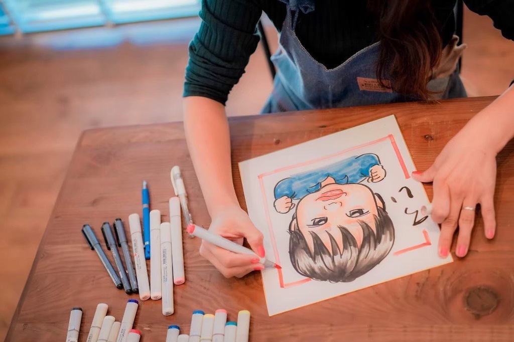 プロの似顔絵師がモデルハウス見学の間に似顔絵を作成!