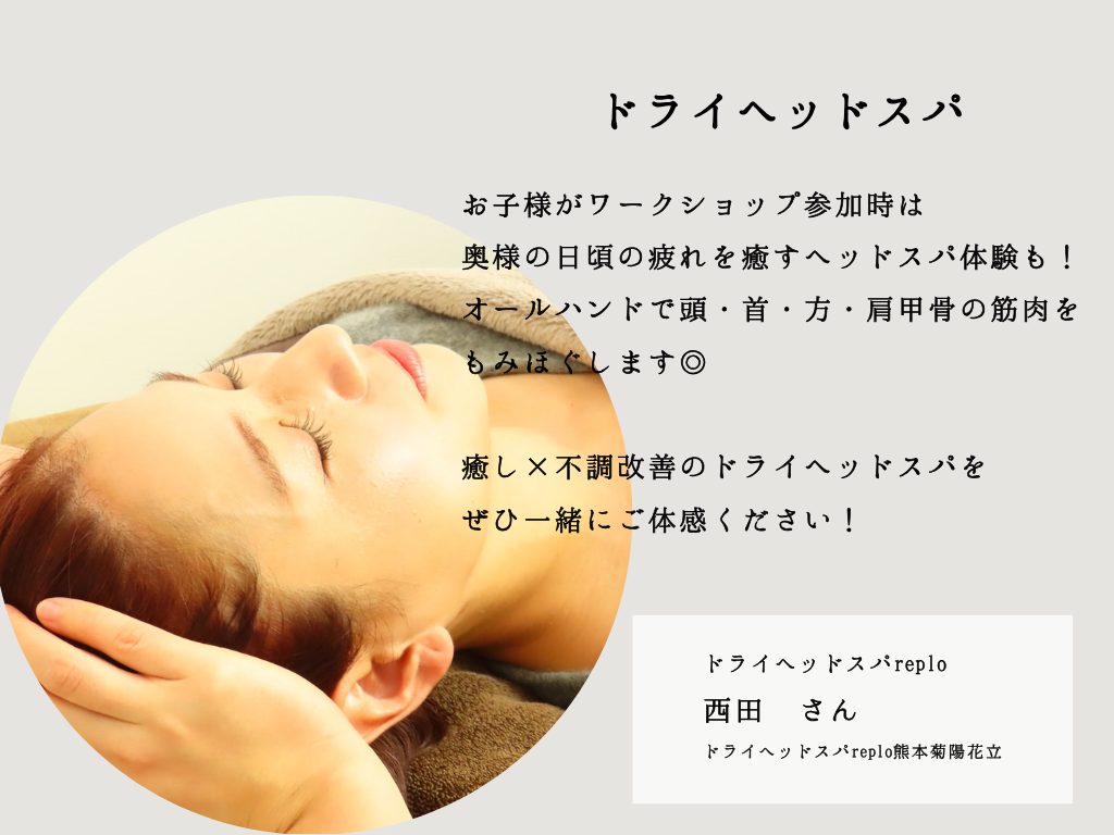 お子様の体験中にお母様は日頃の疲れを癒すドライヘッドスパ体験も!