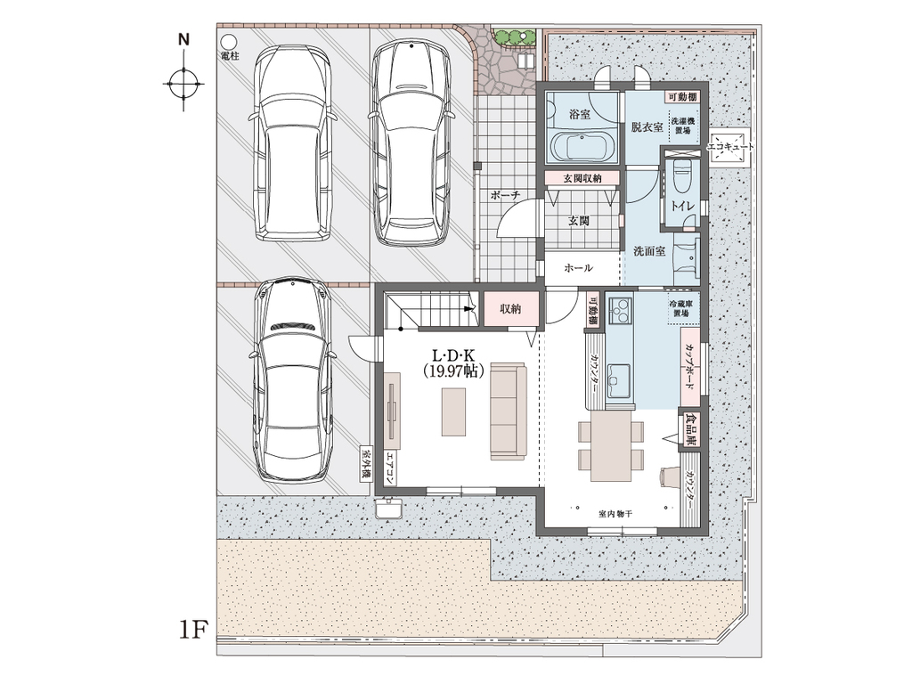 ゆとりの駐車場3台分完備。来客時や将来の車増加にも対応できます。
