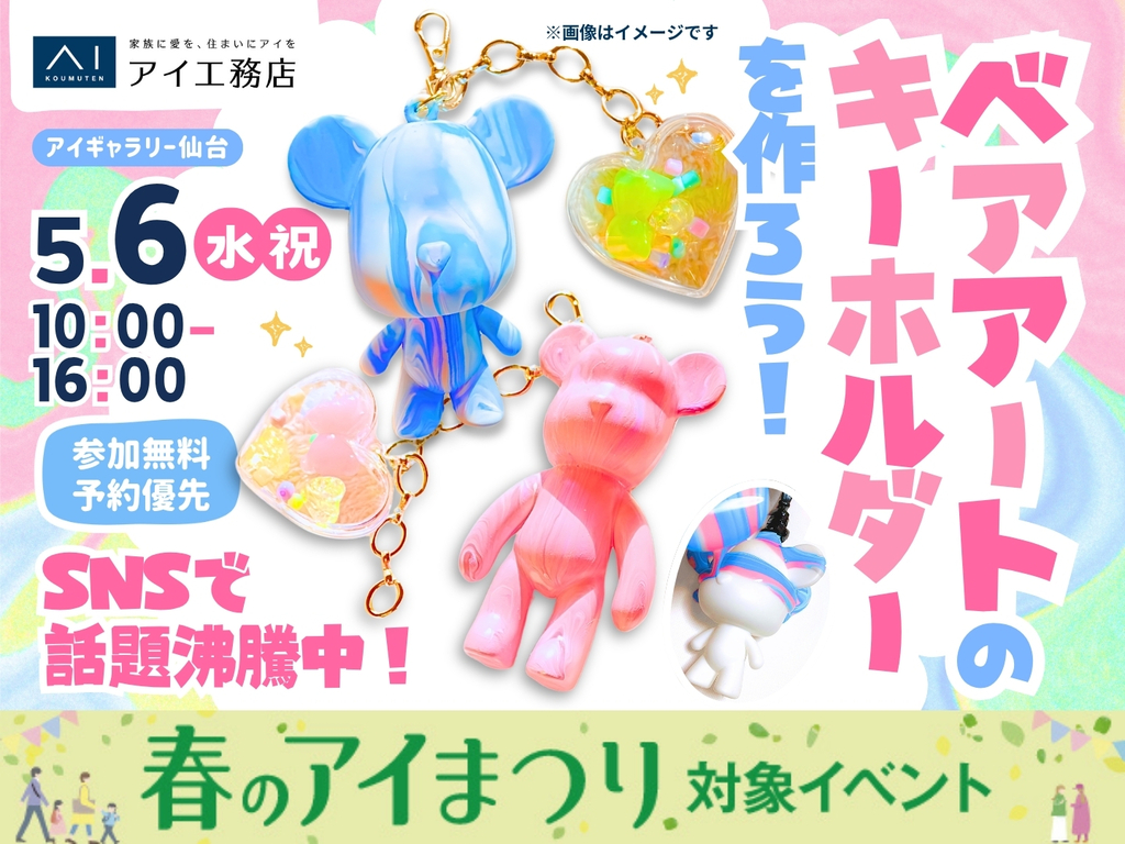 | タイトル | アイギャラリー仙台(ショールーム併設型住宅展示場) SNSで話題沸騰中!ベアアートのキーホルダづくり |