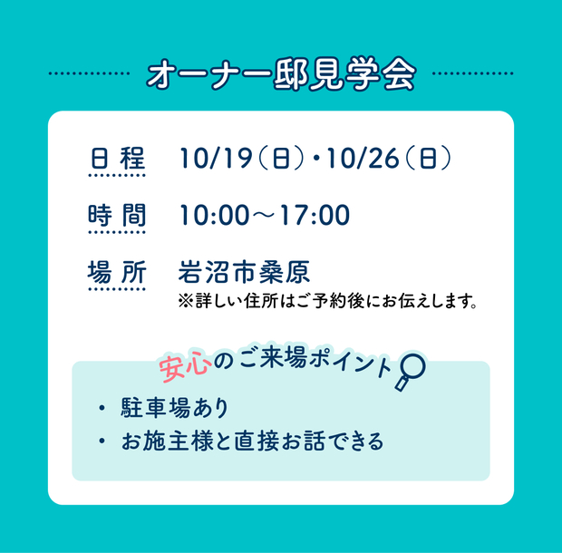 アイ工務店の『住まいの勉強会』は、オーナー邸・完成見学会・モデルハウスを見学できる年2回の期間限定特別イベントです!