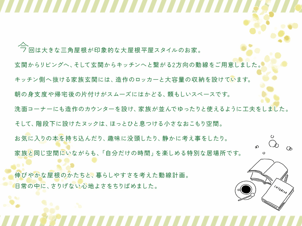 タイトル 3月14日・15日 白山台 / 広い家族玄関と、おこもりヌック。ちょっと差がつく木のお家 完成見学会