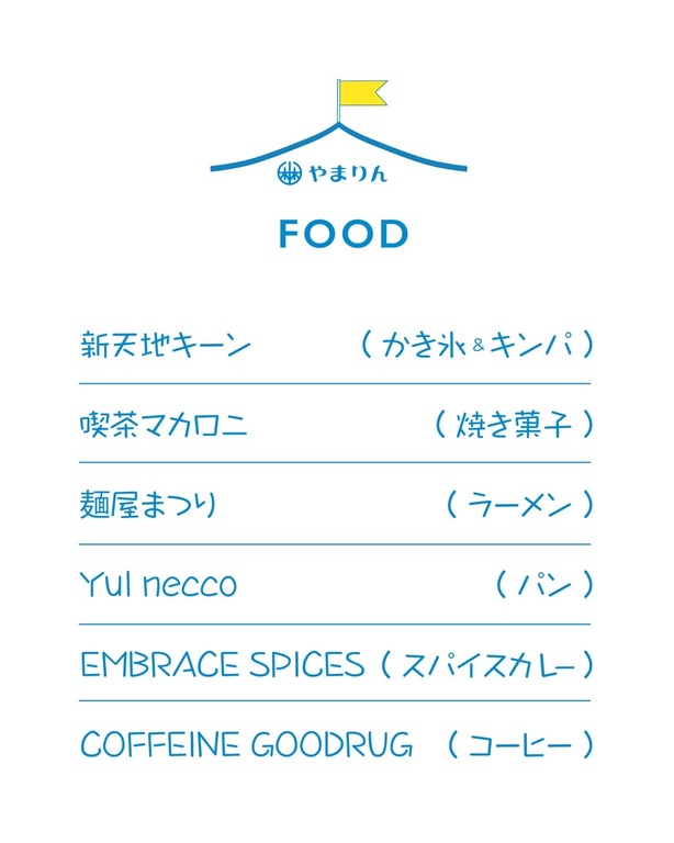 ・麺屋まつり(ラーメン) ・Yul necco(パン) ・EMBRACE SPICES(スパイスカレー)