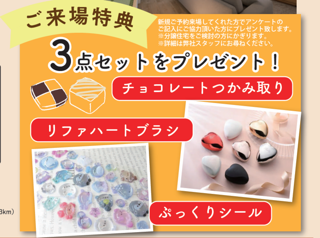 新規にアンケート記入に協力頂いた、新築検討の方には3点セットをプレゼント