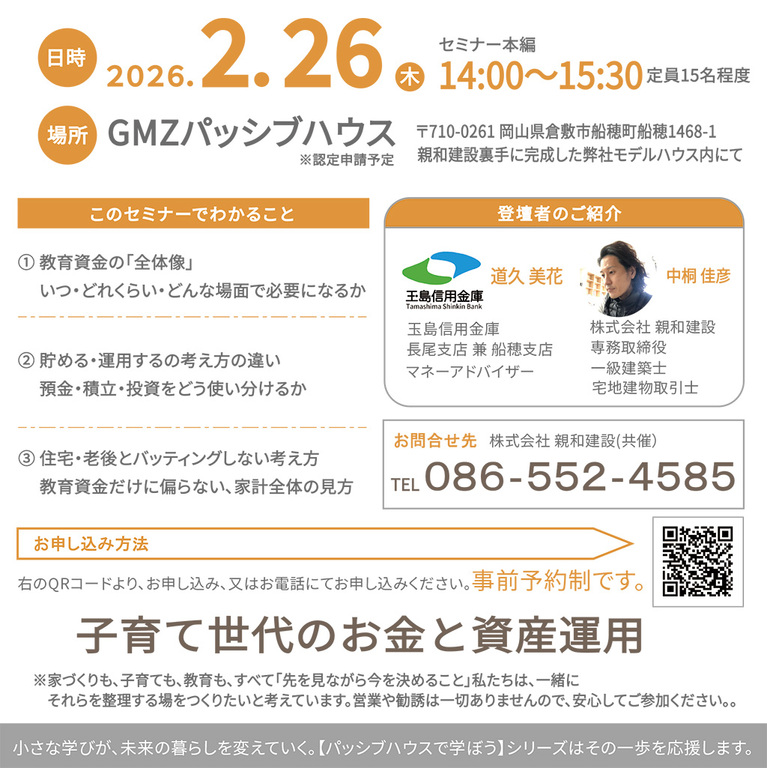 | 開催場所 | 岡山県倉敷市船穂町船穂1469-17 親和建設裏手のモデルハウスにて |